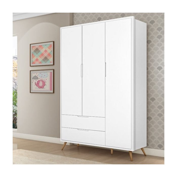 Guarda-Roupa Marilia 3 Portas 2 Gavetas Branco Nature
