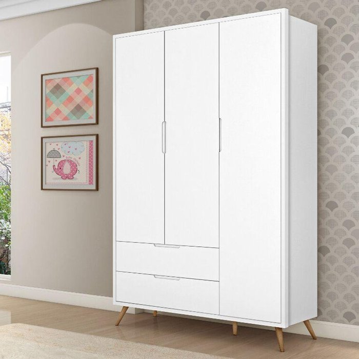 Guarda Roupa Marilia 3 Portas 2 Gavetas Branco Nature Branco