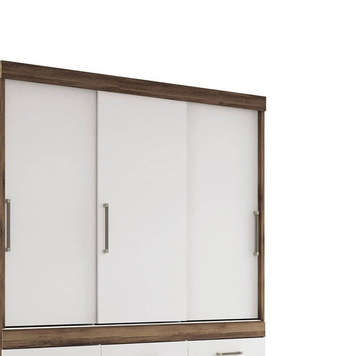 Guarda-roupa Matinhos 3 Portas de Correr C/ 6 Gavetas C/ Pés Demolição / Branco OOL Santos Andira