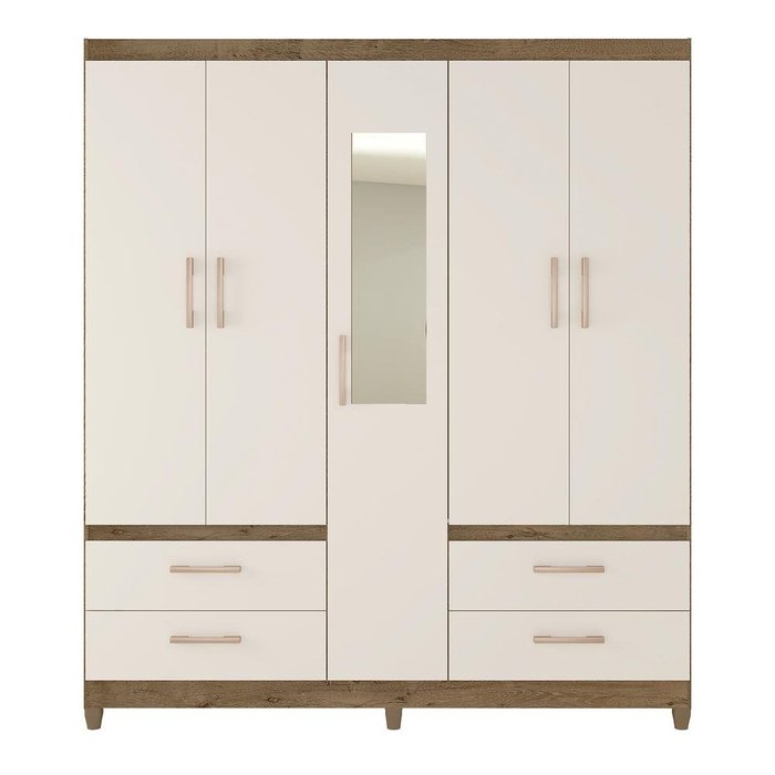 Guarda-roupa, Mdp, 5 Portas, Espelho, 4 Gavetas - Novo Mundo Tabaco / Tabaco Off White / Branco