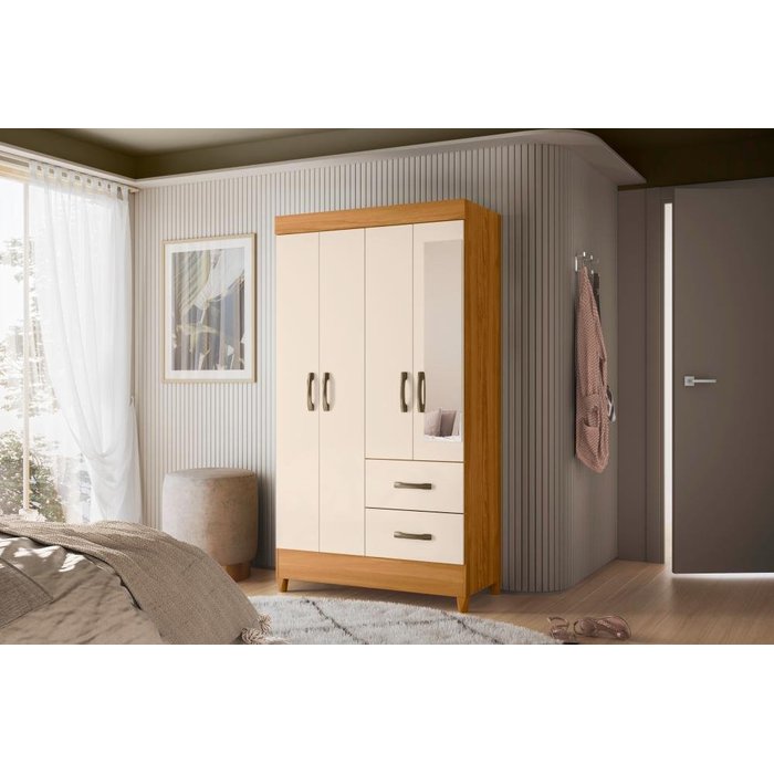 Guarda Roupa Mobi 4 Portas COM ESPELHO Carvalho Grife/Off White Móveis Albatroz Indicada
