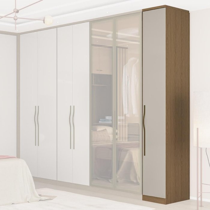 Guarda Roupa Modulado 01 Porta com Prateleiras 245cm Altura Setiba - Carvalho/offwhite