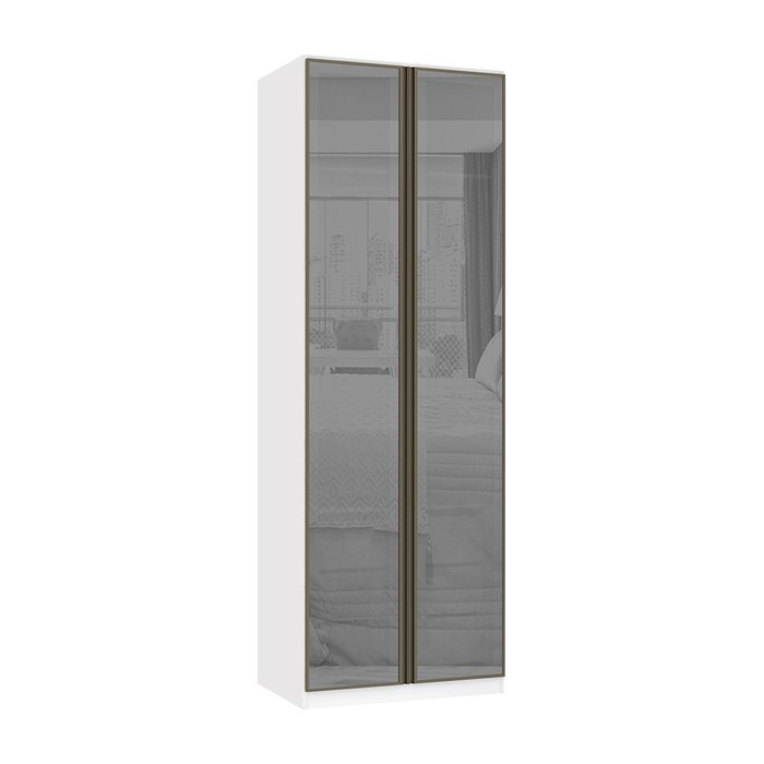 Guarda Roupa Modulado 2 Portas 3 Gavetas 80cm com Vidro Reflecta Prata Prime Luciane Móveis Branco/Vidro Reflecta Prata