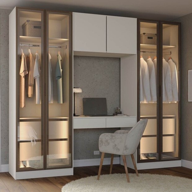 Orion é um guarda-roupa Modular que une tecnologia, sofisticação e design atemporal. Com portas em MDF e/ou vidro reflecta e corpo 100% em MDF, sua composição de cores e distribuição interna valorizam a usabilidade, trazendo aconchego e elegância ao ambiente. As portas metálicas em alumínio, com puxador slim, completam o visual minimalista. Na versão com iluminação em LED dimerizável e acionamento touch lateral, o interior se transforma em uma vitrine funcional revelando com suavidade e intensidade ajustável tudo o que importa. As prateleiras móveis e as ferragens premium com dobradiças soft close e corrediças reforçadas de 45 mm garantem durabilidade, conforto e sofisticação no uso diário.