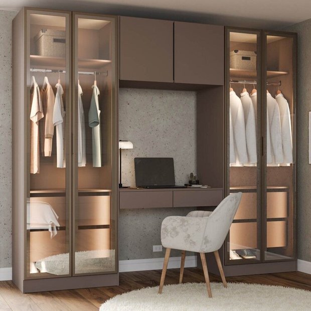 Orion é um guarda-roupa Modular que une tecnologia, sofisticação e design atemporal. Com portas em MDF e/ou vidro reflecta e corpo 100% em MDF, sua composição de cores e distribuição interna valorizam a usabilidade, trazendo aconchego e elegância ao ambiente. As portas metálicas em alumínio, com puxador slim, completam o visual minimalista. Na versão com iluminação em LED dimerizável e acionamento touch lateral, o interior se transforma em uma vitrine funcional revelando com suavidade e intensidade ajustável tudo o que importa. As prateleiras móveis e as ferragens premium com dobradiças soft close e corrediças reforçadas de 45 mm garantem durabilidade, conforto e sofisticação no uso diário.