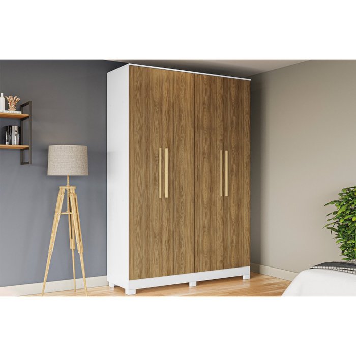 Guarda-roupa Modulado 4 Portas em Mdp 158 Cm Branco/Nogueira