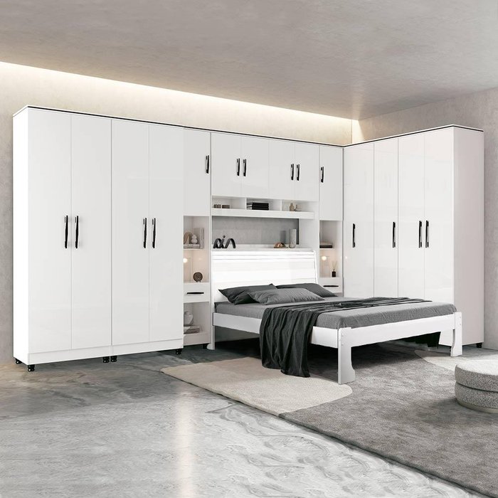 Guarda Roupa Modulado 8 Peças 14 Portas Com Cama E Colchão Casal Gazin Branco Delta Fênix Branco