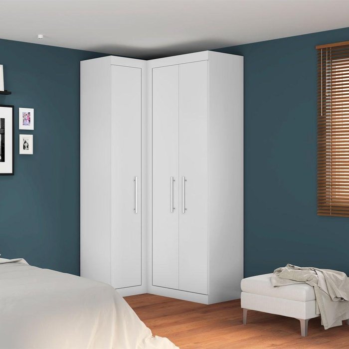 Guarda Roupa Modulado Closet de Canto 3 Portas 2 Gavetas Branco