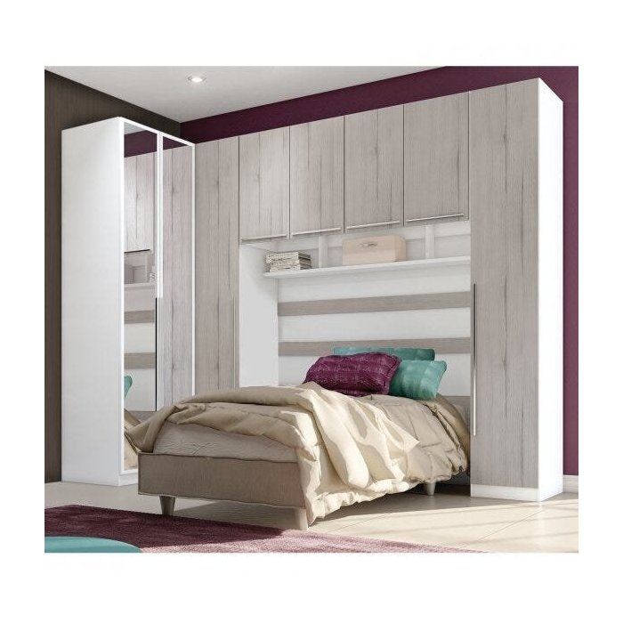 Guarda-Roupa Modulado com Espelho Exclusive Henn Branco HP/Carvalho BP