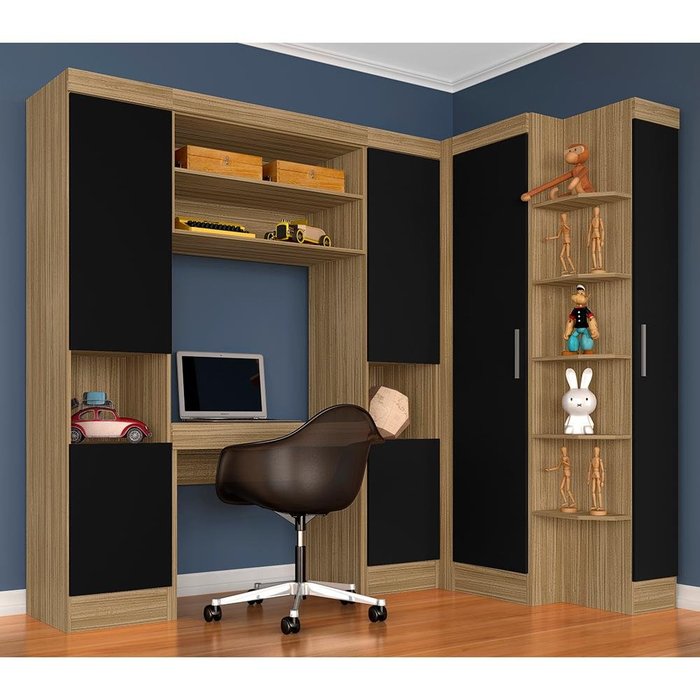 Guarda Roupa Modulado com Penteadeira Cleo Bor/pret - Móveis Arapongas Boreal/preto Fosco