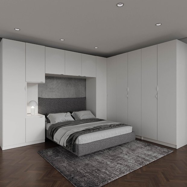 O Guarda Roupa Modulado de Canto 12 portas 11 gavetas 6 peças Hera CabeCasa foi desenvolvido para trazer a experiência de ter seu móvel customizado de acordo com a necessidade do seu espaço. O conjunto conta com um módulo de uma porta e dois módulos de duas portas, canto reto, mesa de cabeceira e ponte 3 portas.