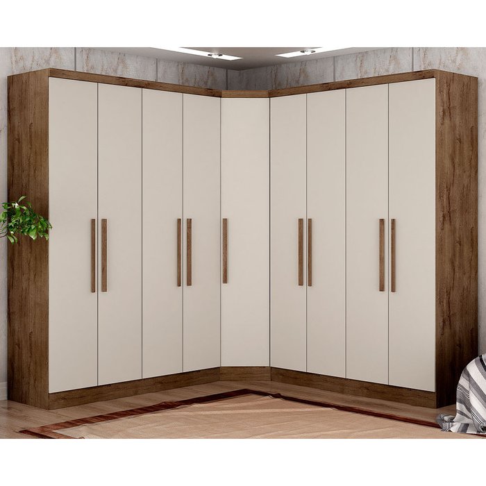 Guarda roupa modulado 100 MDF, puxadores com acabamento amadeirado, colunado em 25mm, dobradiças de pressão 35mm, 6 gavetas internas com puxadores e corrediças telescópicas, espaço para longo, cabideiros e calceiros em alumínio.