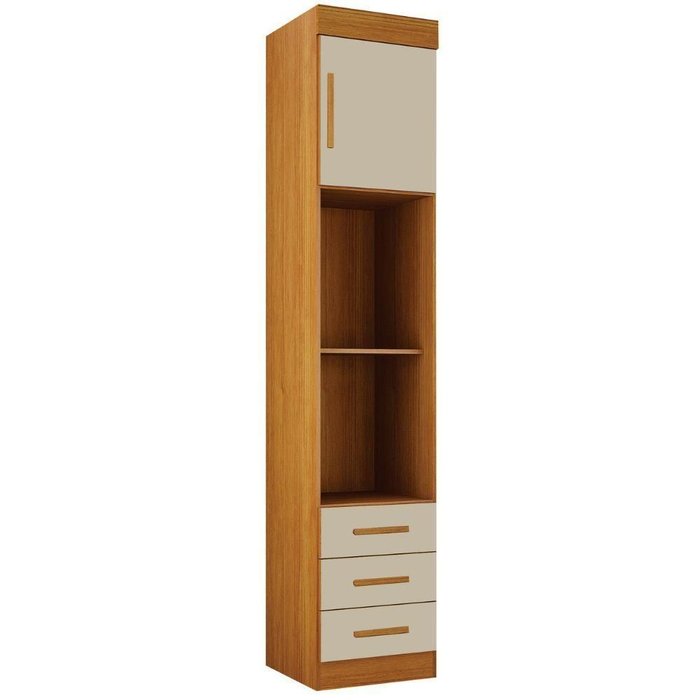 Guarda Roupa Modulado Individual Orion Cinamomo Off White 1 Porta 3 Gavetas Leifer Móveis Organize seu espaço do seu jeito com este Módulo Individual de Guarda Roupa. Versátil e funcional, ele pode ser usado sozinho ou combinado com outros módulos da linha ORION para formar um guarda roupa modulado totalmente personalizado. Especificações - Medida Produto Montado: 230 (A) x 44 (L) x 52 (C) cm; - Cor: Cinamomo/Off White; - Acabamento: Pintura UV; - Estrutura: 100% MDF; - Portas: Sim, 1, de bater e puxador de madeira; - Gavetas: Sim, 3, com corrediça telescópicas e puxador de madeira; - Prateleiras: Sim, 2; - Cabideiro: Não; - Necessita de Montagem: Sim; - Complexidade da Montagem: Alta; - Peso do Produto: 43 Kg; - Acompanha Manual de Montagem e Kit Ferragens; Informações Importantes - A "disponibilidade" se refere ao prazo para o envio do produto encomendado. - A cor do produto pode variar em relação à foto devido a fatores como tratamento de imagem e calibração do monitor. - Detalhes e acabamentos podem não ser evidentes nas imagens, que são meramente ilustrativas. - Objetos que aparecem nas fotos não acompanham o produto. - A instalação deve ser realizada por um técnico de confiança do cliente, pois não nos responsabilizamos por montagens. - A transportadora não realiza entregas com subida de escada ou içamento de produtos; despesas desse tipo são de responsabilidade do cliente. - Limpeza e cuidados, limpeza com flanela ou pano macio. Não utilizar produtos químicos, lustra móveis, abrasivos, álcool ou limpeza a vapor. Evitar exposição prolongada ao sol, pois pode causar ressecamento de sua estrutura, danificando-o.