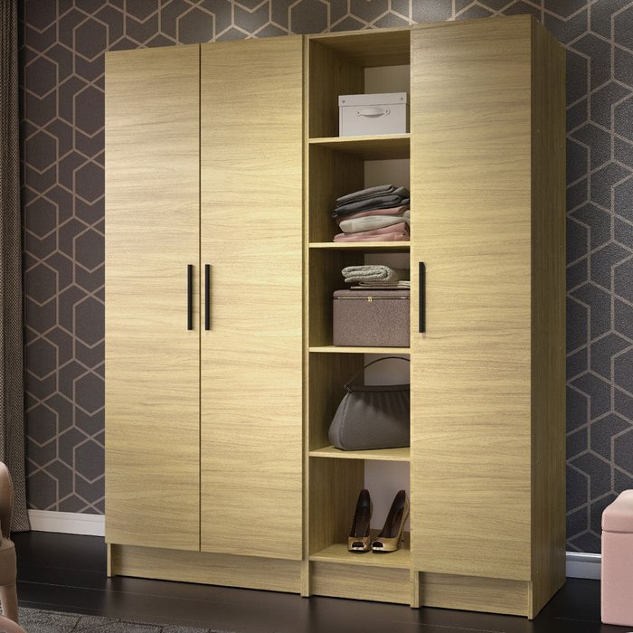 Guarda-Roupa Modulado Madesa Nilo 100% MDF 160002 3 Peças Carvalho Cor:Carvalho Amadeirado Claro