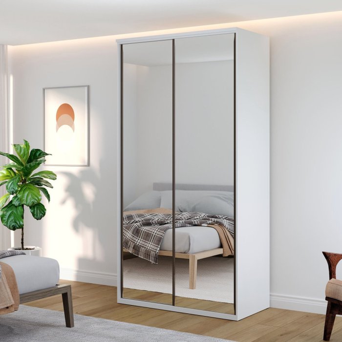 Guarda-Roupa Modulado Solteiro 1,20m 2 Portas de Correr 3 Gavetas 2 Espelhos 100% MDF Attuale Branco