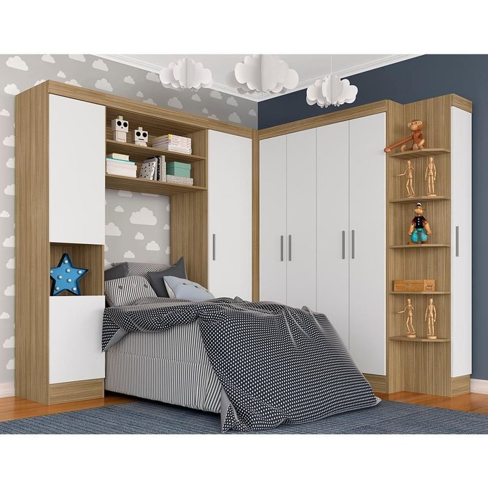 O Guarda Roupa Modulado para cama de Solteiro Andrea contém um roupeiro de 4 portas super completo e perfeito para otimizar o seu espaço!