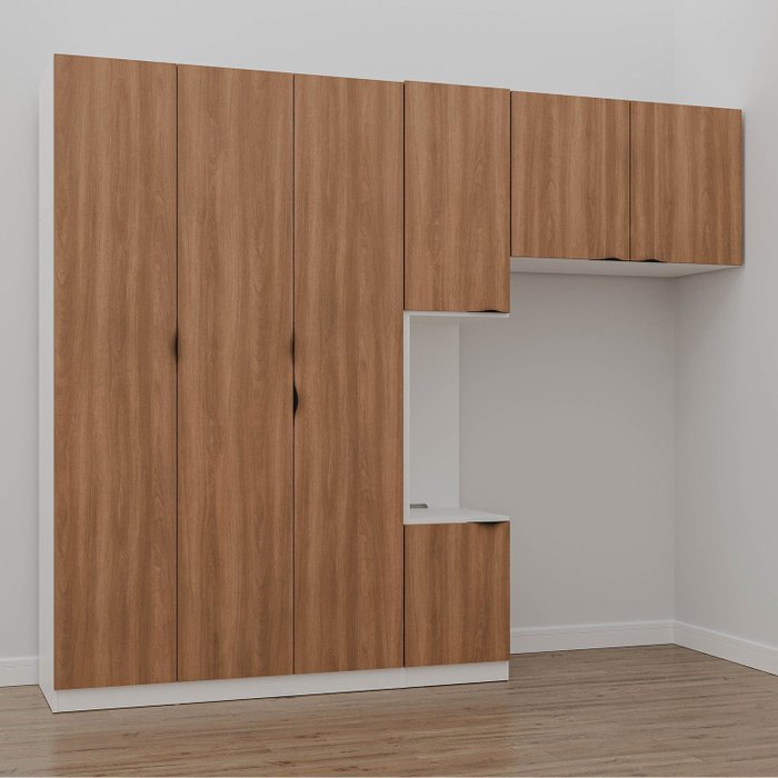 Guarda-Roupa Modulado Solteiro com Mesa de Cabeceira 7 Portas 3 Peças Hera CabeCasa MadeiraOriginals