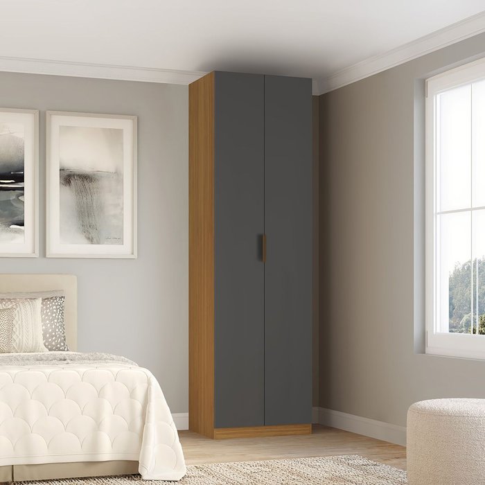 Guarda Roupa Modular 2 Portas com Gavetas 70cm Altezza Clean Belmax:freijó/titânio