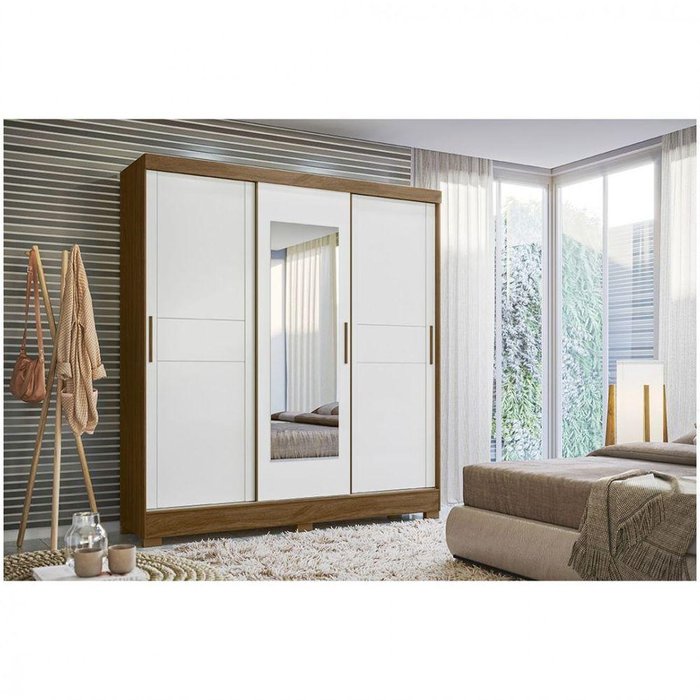 Guarda Roupa Moval Bahamas 3 Portas 2 Gavetas Com Espelho Naturale/branco