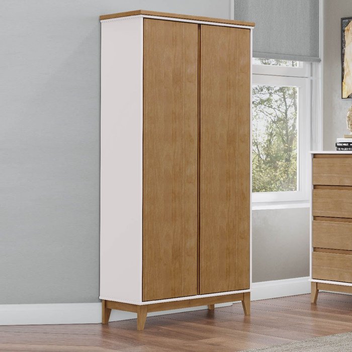 Guarda-Roupa Multiuso 2 Portas 5 Prateleiras Off White/Freijó Prata Madeira Pinus com MDF - Finestra