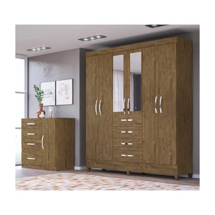 Guarda-roupa New Avai com Espelho e Cômoda Venus Castanho Wood Moval