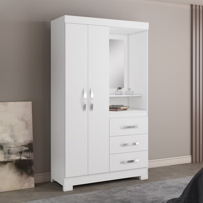 Geralmente, este tipo de guarda-roupa apresenta 2 ou 3 portas e tem menos divisões no espaço interno.