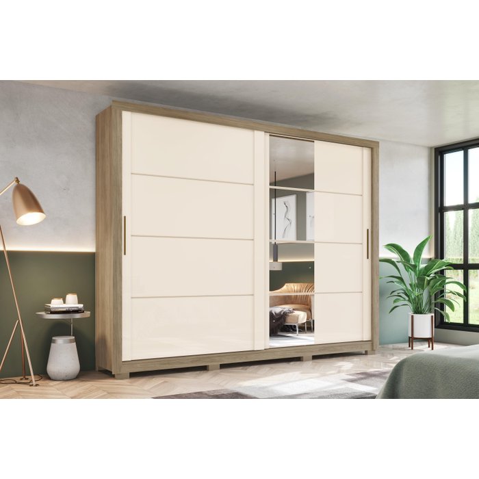 Guarda-roupa Palace 02 Pts. Deslizantes C/ Espelho Rústico/off White - Henn