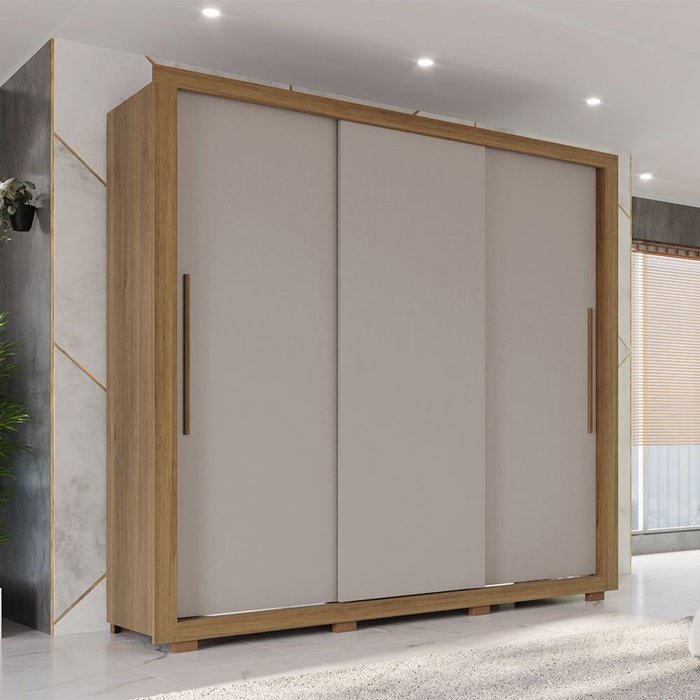 Guarda Roupa Panamá 3 Portas sem Espelho Salleto Cinamomo/ Off White