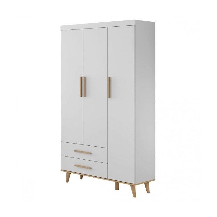 Guarda-Roupa para Bebê 3 Portas 2 Gavetas Pés Palito Ludmila Branco/Bétula