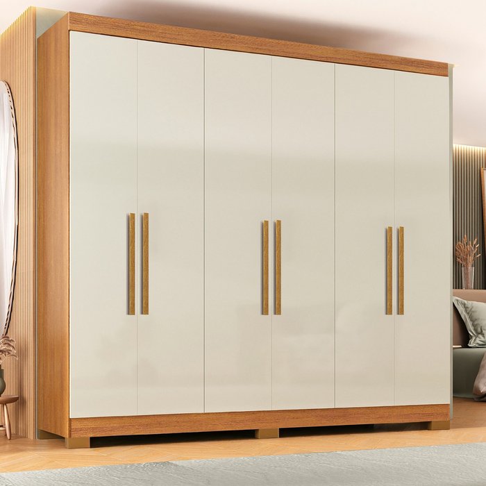 Guarda-roupa Paris 6 Portas Mdp com Pés Cinamomo/Off White