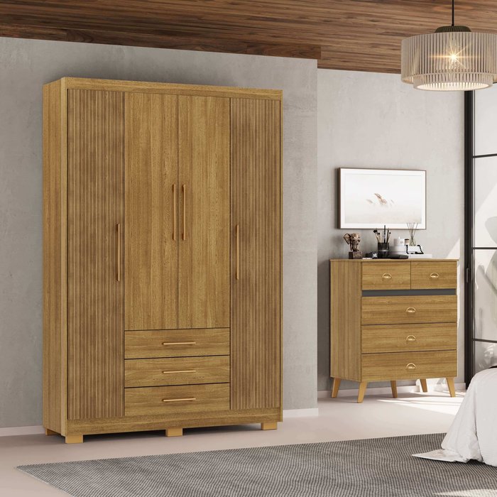 Guarda Roupa Pequeno Ep 4 Portas e 3 Gavetas Ideal para Quarto de Solteiro:nature-brisa