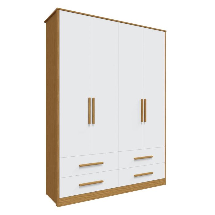 Guarda Roupa Peroba Charlo 4 Portas Lisa - Branco/Amêndoa