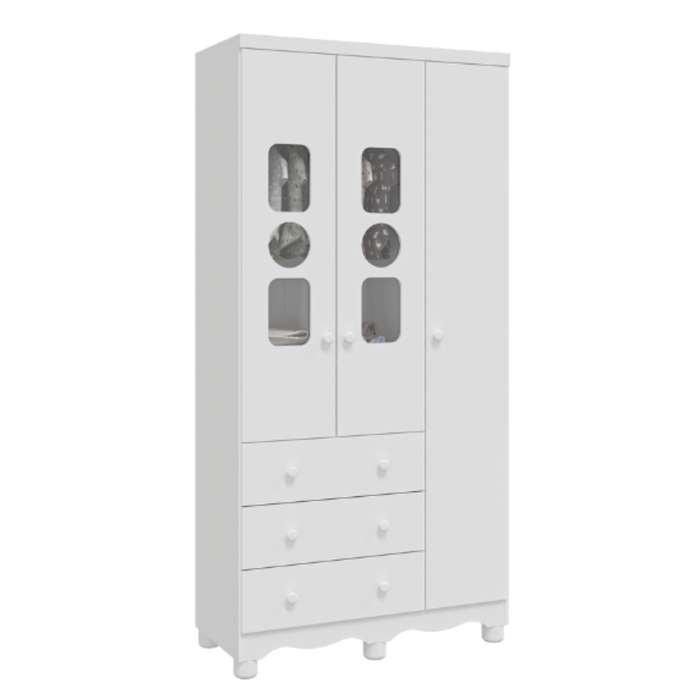 Guarda Roupa Peroba Tedy 3 Portas e 3 Gavetas Mdf Cor Branco