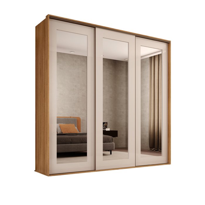 Guarda-Roupa Personal Organizer Casal 2,50M MDF 3 Portas Espelhadas Cool Home Mel com Off White
