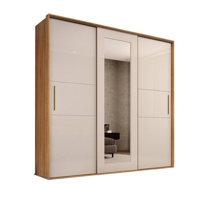 Guarda-Roupa Personal Organizer Casal 2,50M MDF 8 Gavetas 1 Espelho Cool Home Mel com Off White