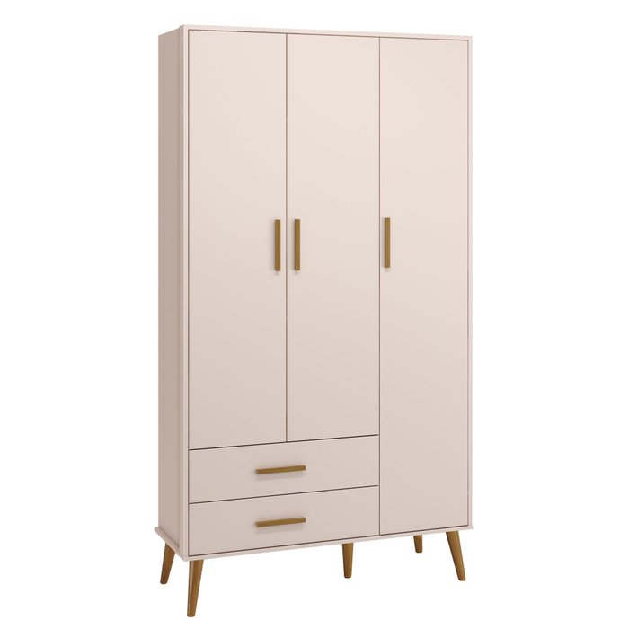 O Guarda-Roupa Retrô 3 Portas Isis - MóveisAqui introduz um estilo retrô com os pés em madeira maciça, apresenta um desing clean que combina com vários estilos de decoração. Possui um espaço amplo e com divisórias internas para que as roupinhas do bebê possam ser organizadas e armazenadas com comodidade,puxadores em MDF envelopado.