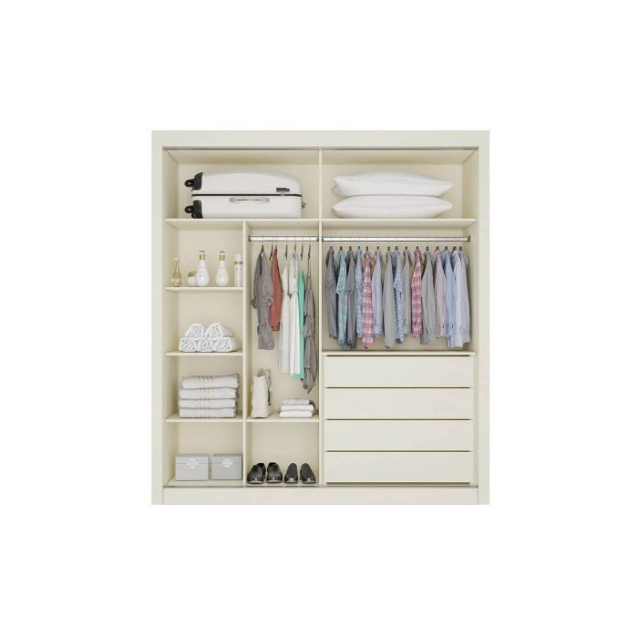 O Guarda Roupa Lugano vai proporcionar um ambiente aconchegante mantendo um visual sofisticado e funcional. Composto por peças de extrema qualidade e com excelente espaço interno com varias prateleiras e espaço para longo, oferecendo máxima organização de forma prática. Fabricado em 100% MDF, 2 portas de correr, possui 4 gavetas com corrediças telescópicas, puxadores embutidos e cabideiros em alumínio. Amplo espaço interno. Aproveite!