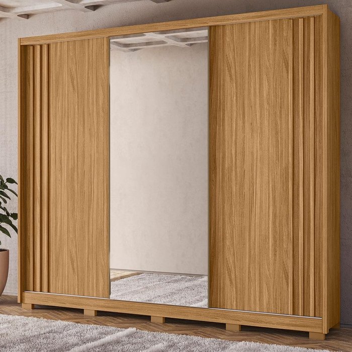 Guarda Roupa Roupeiro 03 Portas 06 Gavetas C/espelho Arizona Freijó Moval