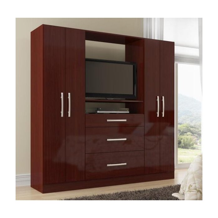 Guarda-Roupa/Roupeiro 4 Portas e 3 Gavetas Mogno Brilho