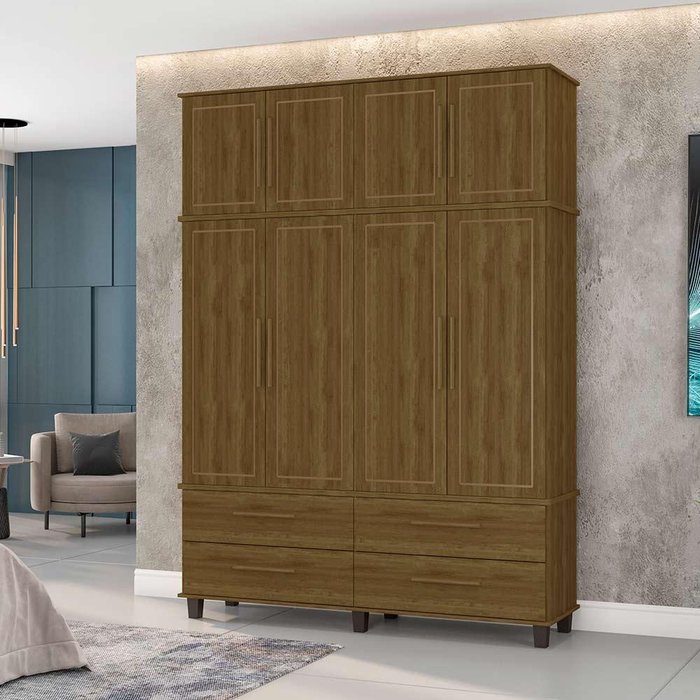 Guarda-Roupa Roupeiro 4 Portas Solteiro House Imbuia Fabri Móveis