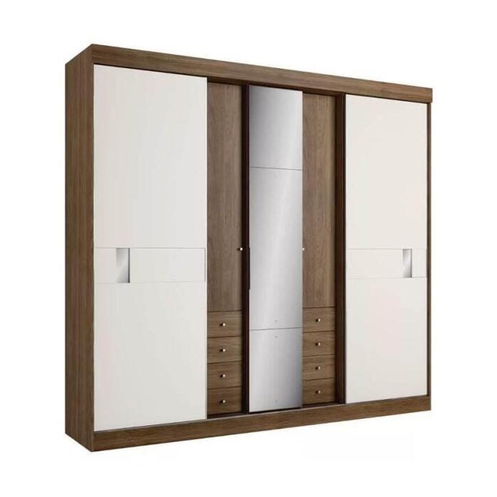 Guarda-roupa Roupeiro 5 Portas Thb, 8 Gavetas Sognare Glass Carvalho Sensitive, Off-white