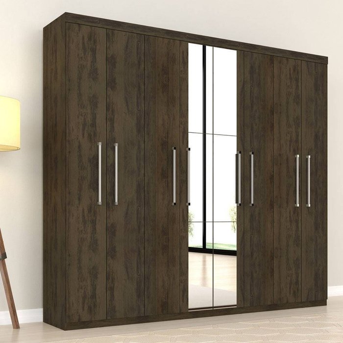 Guarda-Roupa / Roupeiro 8 Portas Lauren Capuccino com Espelho - Móveis Arapongas