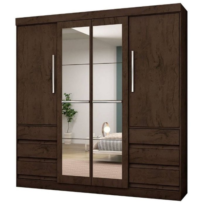 Guarda-Roupa Roupeiro Araplac 4 Portas e 6 Gavetas com Pés e Espelho Imbuia Marrom