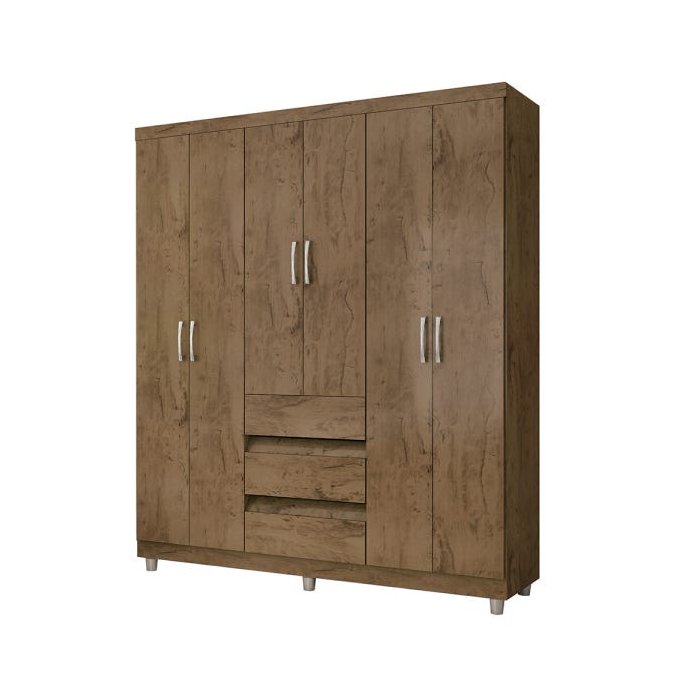 Guarda-Roupa Roupeiro Araplac 6 Portas e 3 Gavetas com Pés - Madeirado