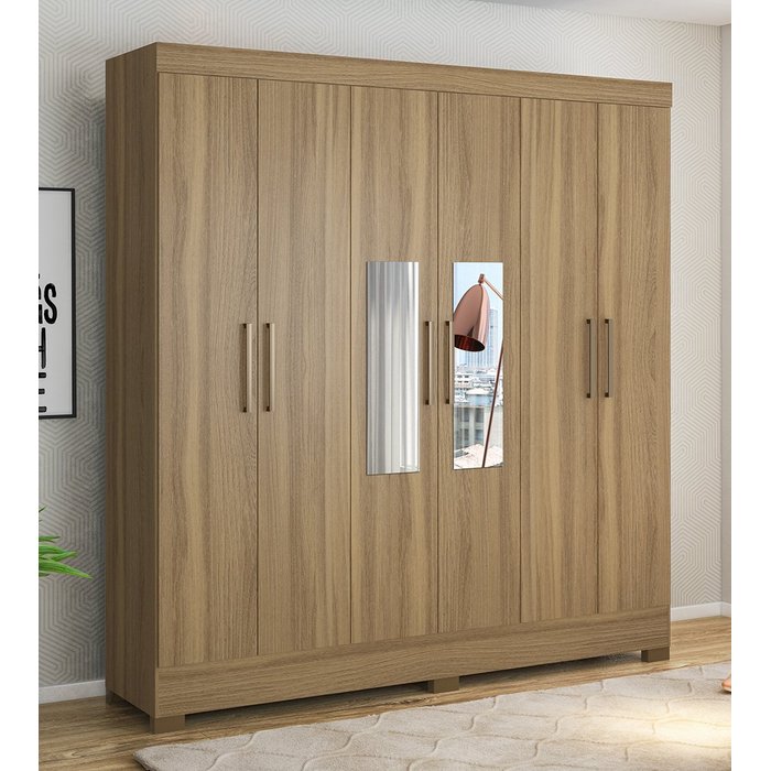 Guarda Roupa Roupeiro Casal 63020 06 Portas 03 Gavetas c/ Espelho Prático Amendola Touch Demóbile