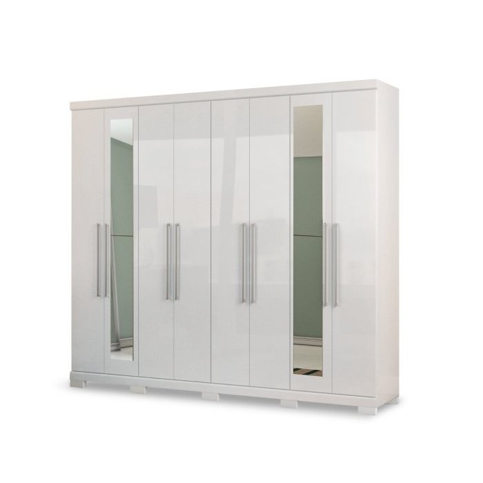 Guarda-Roupa Roupeiro Casal 8 Portas Branco com Espelhos e Pés