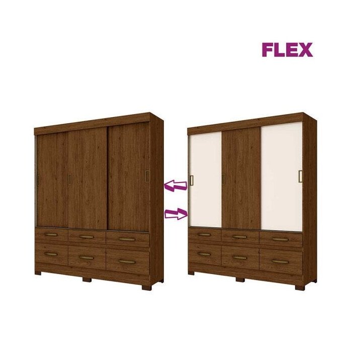 Roupeiro Casal Flex 3 Portas Deslizantes 6 Gavetas Briz