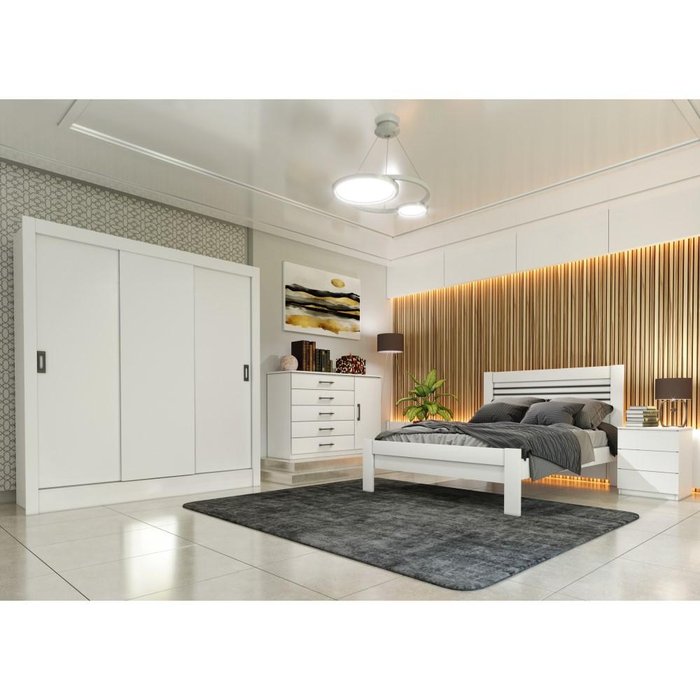 Guarda Roupa Roupeiro Casal Grande 3 Portas 4 Gavetas Branco