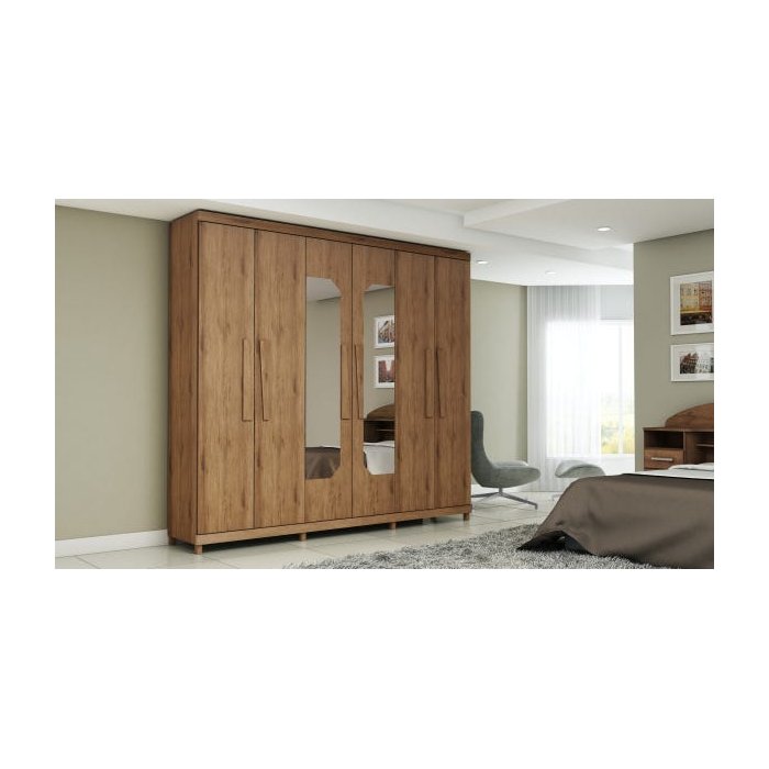 Guarda-Roupa Roupeiro Gelius Infinity 6 Portas e 5 Gavetas com Pés e Espelho - Madeirado