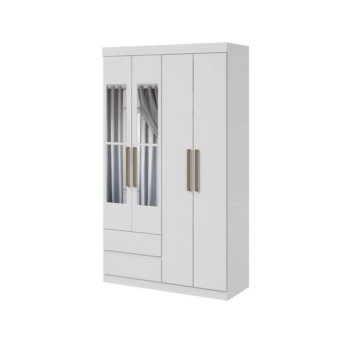 Guarda-Roupa Roupeiro Zeus 4 Portas com Espelho 2 Gavetas Branco